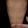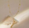 Collier pendentif en acier inoxydable orné d’une chaîne de perles synthétiques à longue frange, idéal pour un usage quotidien féminin.